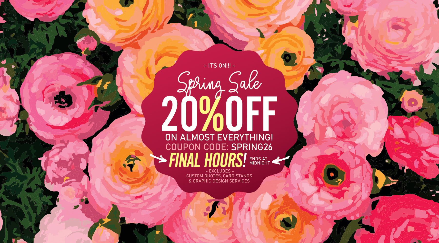 🌷 FINAL HOURS! 20% OFF. Code SPRING26. Ends Midnight 🌷